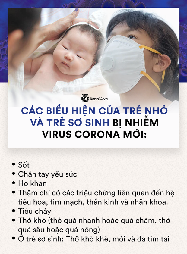 Những biểu hiện của trẻ nhỏ và trẻ sơ sinh bị nhiễm virus corona (nguồn ảnh kenh14)