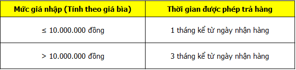 Thời hạn trả hàng dành cho đại lý