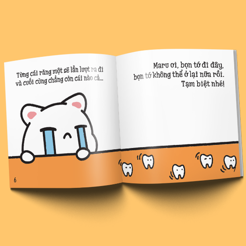 Câu chuyện Maru rụng răng rất gần gũi với các bé, bởi ai cũng phải trải qua một thời kỳ “hoảng hốt” như vậy. Các bé có thể cũng sẽ lo lắng với những thay đổi của cơ thể, nào là “tại sao răng lại rụng”, “răng rụng rồi mình có ăn được không?”,… Đơn giản như vậy, bố mẹ có thể dạy cho các bé biết rằng đó là sự phát triển hoàn toàn bình thường của mỗi bạn nhỏ, và chiếc răng cũ rụng đi thì sẽ sớm có chiếc răng mới mọc lên thay thế thôi.
