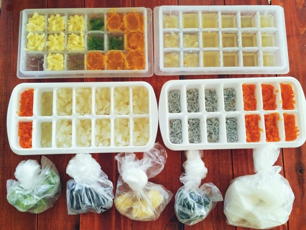 Chuẩn bị những khay ô vuông và túi đựng thực phẩm để bảo quản đồ ăn dặm trong tủ lạnh cho bé