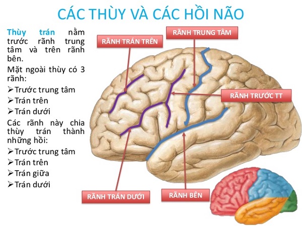 Thùy trán nằm ở phần trước của não và đặc biệt là toàn bộ võ não từ rảnh trung tâm. Thùy trán được coi là một thùy rất quan trọng, bởi vì nó đáp ứng được chức năng trung tâm trong việc xử lý thông tin. Thùy trán được chia thành nhiều cùng và có nhiều chức năng khác nhau.
