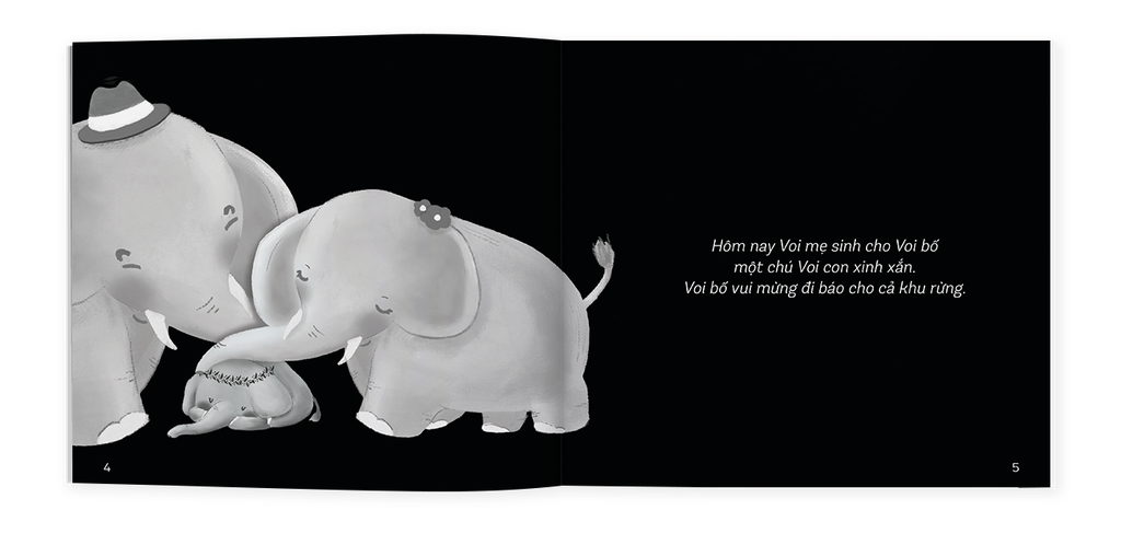 Hình ảnh đen -trắng và xám trung gian giúp kích thích thị giác trẻ sơ sinh.